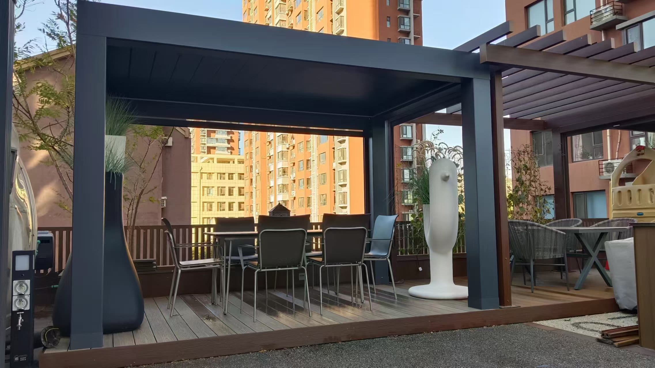 Perfekt für Terrassen, Innenhöfe, Poolbereiche und Outdoor-Essbereiche. Kann auch als Carport oder Geräteschutz dienen.
