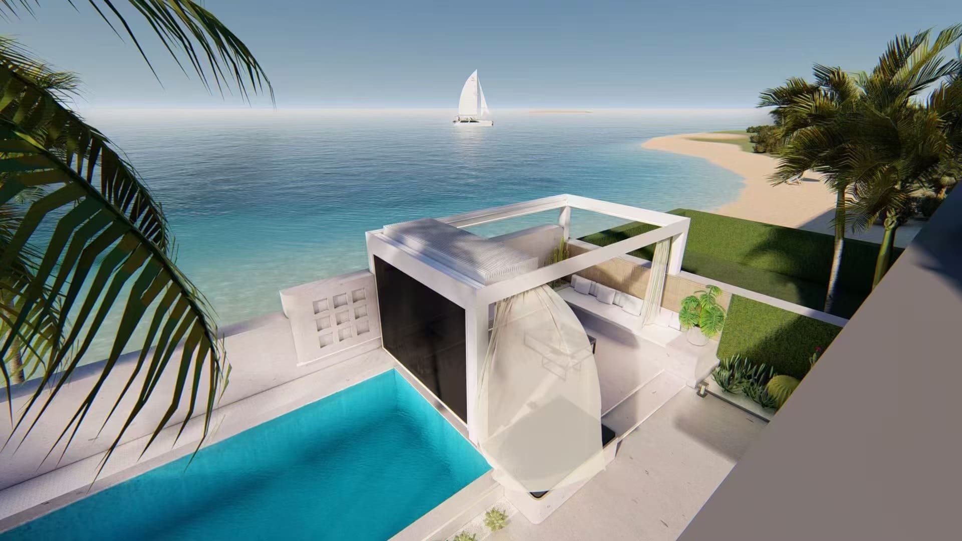 Klares, modernes Design fügt sich nahtlos in die zeitgenössische Architektur ein, ist freistehend oder wandmontiert realisierbar und erweitert den funktionalen Wohnraum im Freien.