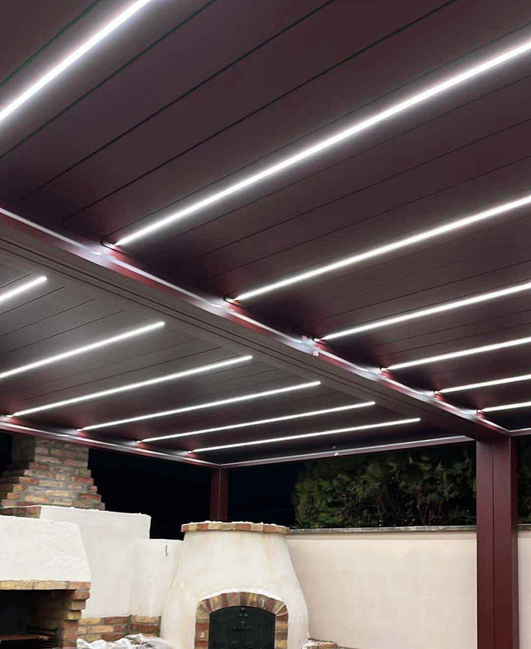 - Hochwertige Materialien:Sowohl die Struktur als auch die Lamellen bestehen aus 3 mm dicken, verstärkten, pulverbeschichteten Aluminiumprofilen. Dies gewährleistet Langlebigkeit, Festigkeit und ein elegantes Finish, das den Elementen standhält.