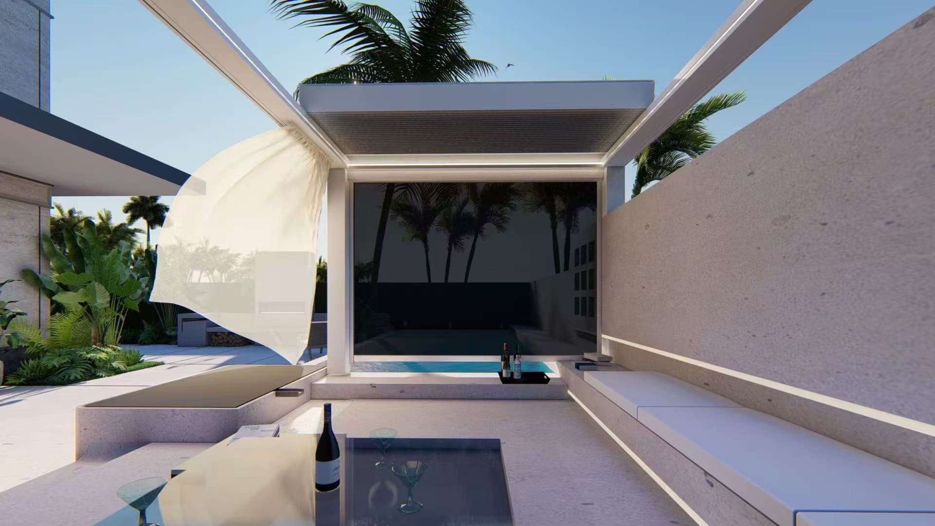- Rüsten Sie Ihre Pergola mit dem motorisierten Zip-Screen auf, um Ihren Außenwohnraum funktionaler und angenehmer zu gestalten.