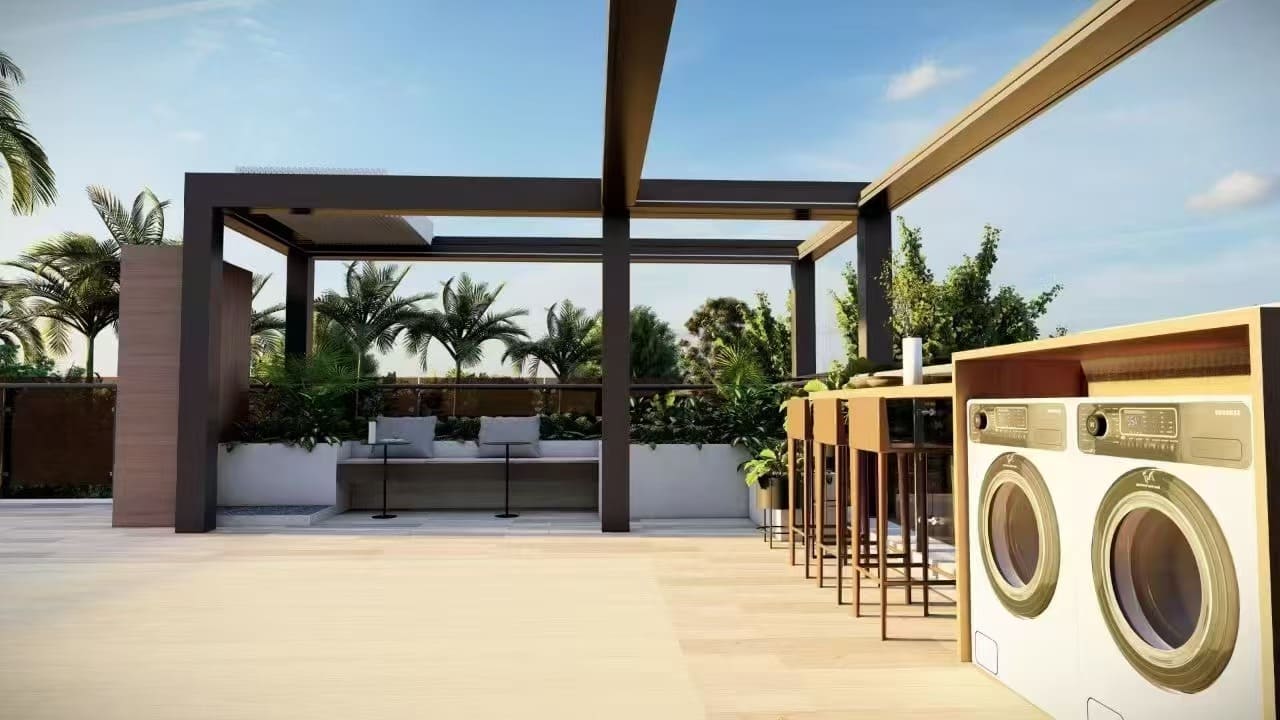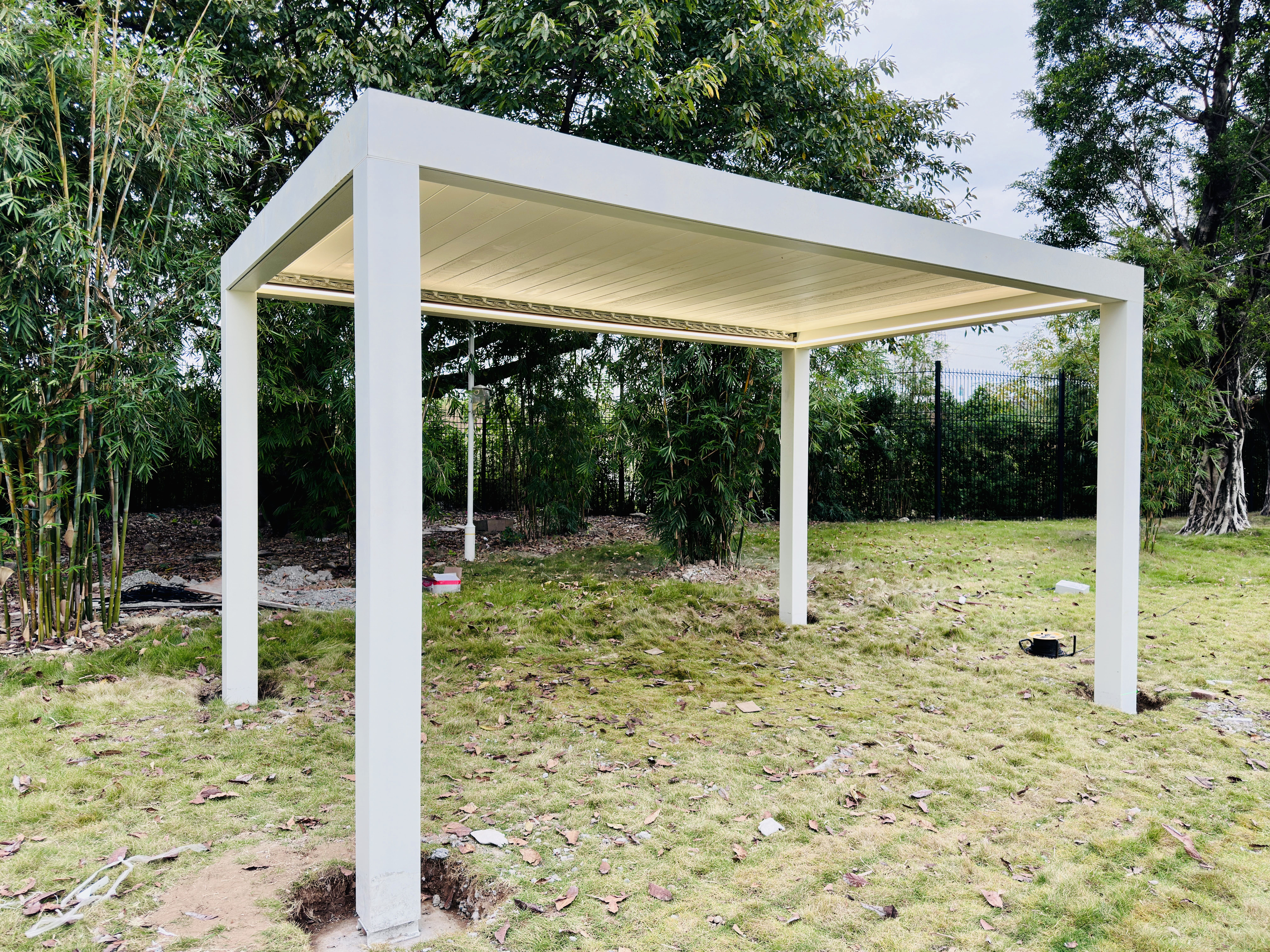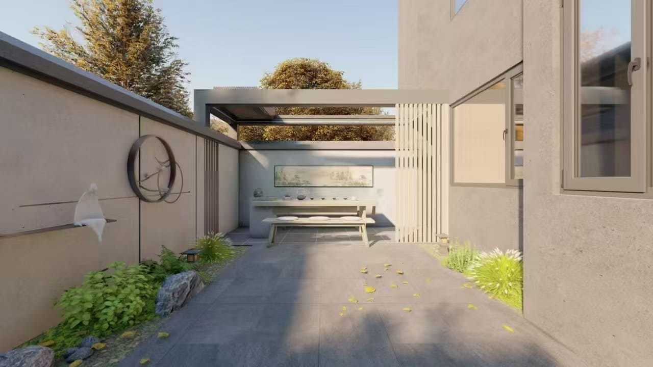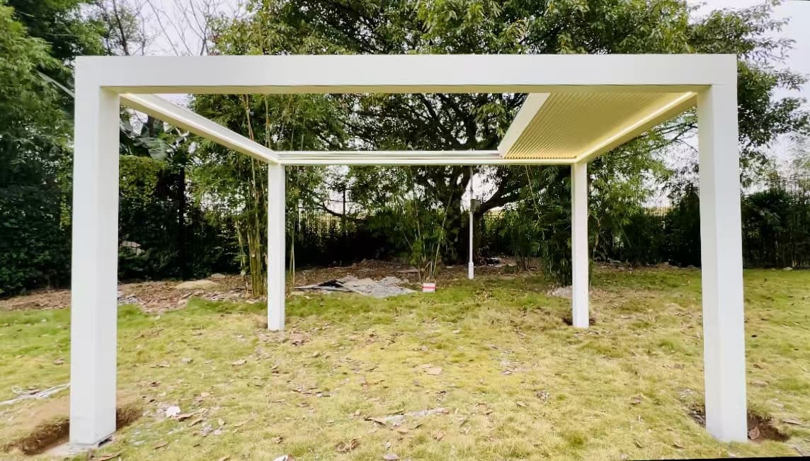 - Hochwertige Materialien:Sowohl die Struktur als auch die Lamellen bestehen aus 3 mm dicken, verstärkten, pulverbeschichteten Aluminiumprofilen. Dies gewährleistet Langlebigkeit, Festigkeit und ein elegantes Finish, das den Elementen standhält.