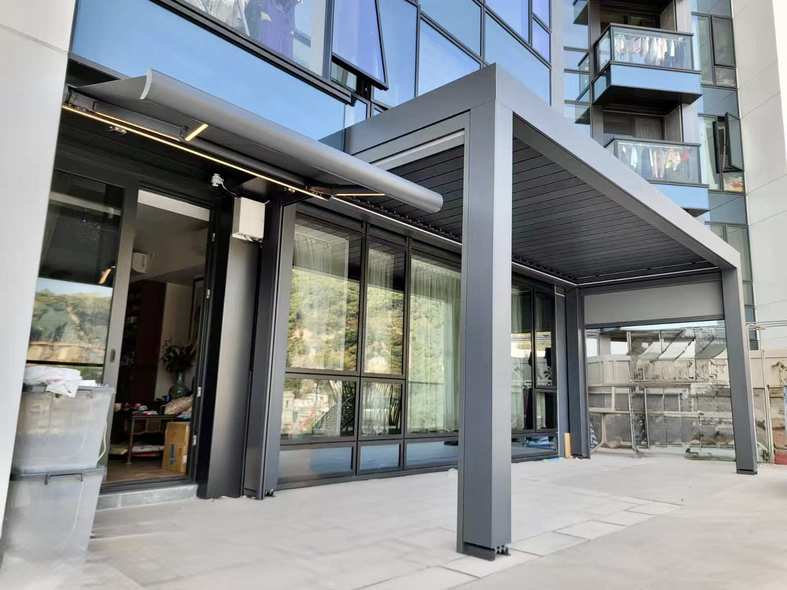 Erleben Sie die perfekte Balance zwischen Schutz und Offenheit mit unserem innovativen einziehbaren Pergola-System, das sich Ihrem Lebensstil und den Wetterbedingungen anpasst.
